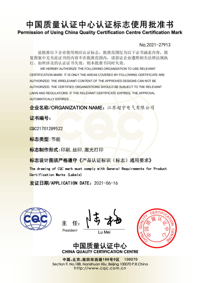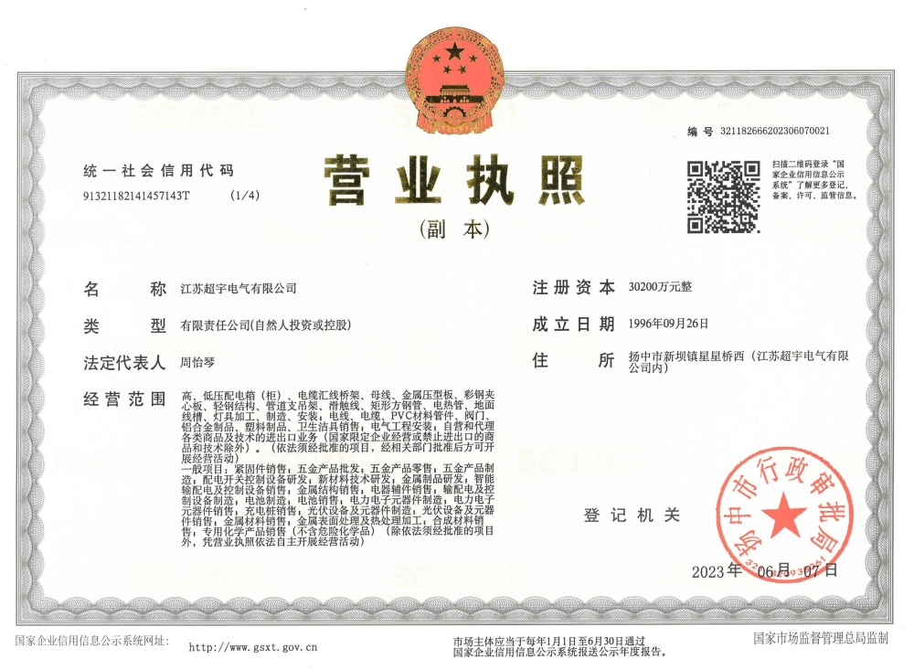 江蘇超宇電氣有限公司地處繁榮富饒的長(zhǎng)江金三角,座落在聞名遐邇的生態(tài)示范區(qū)水上花園城市--揚(yáng)中。公司成立于一九九六年,經(jīng)過(guò)二十多年的發(fā)展進(jìn)步,目前已形成專業(yè)化生產(chǎn)制造規(guī)模。 公司現(xiàn)有注冊(cè)資金3.0... ... [詳細(xì)>>]